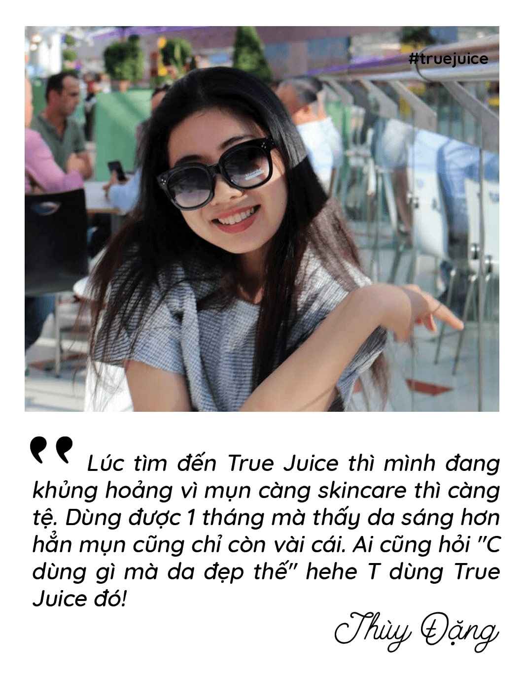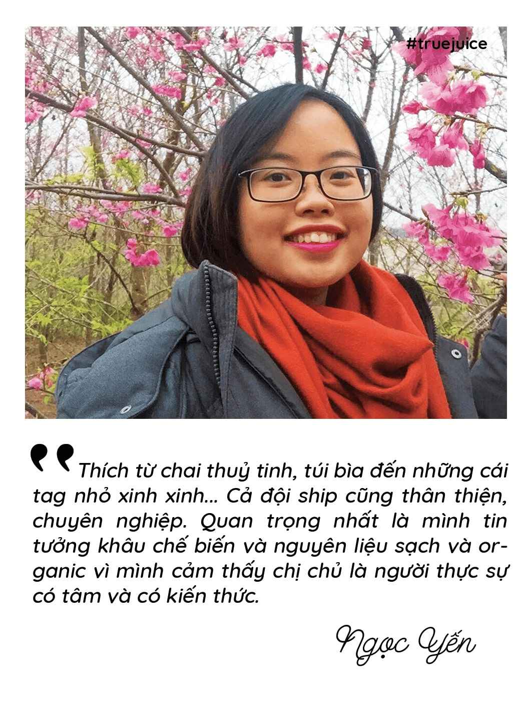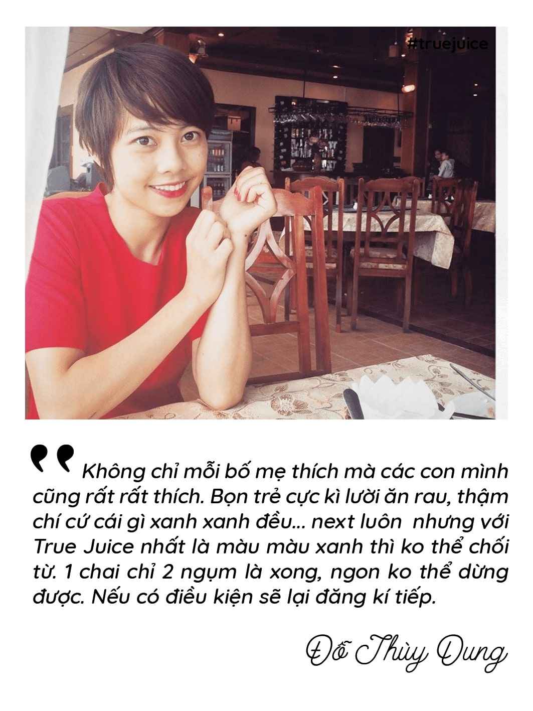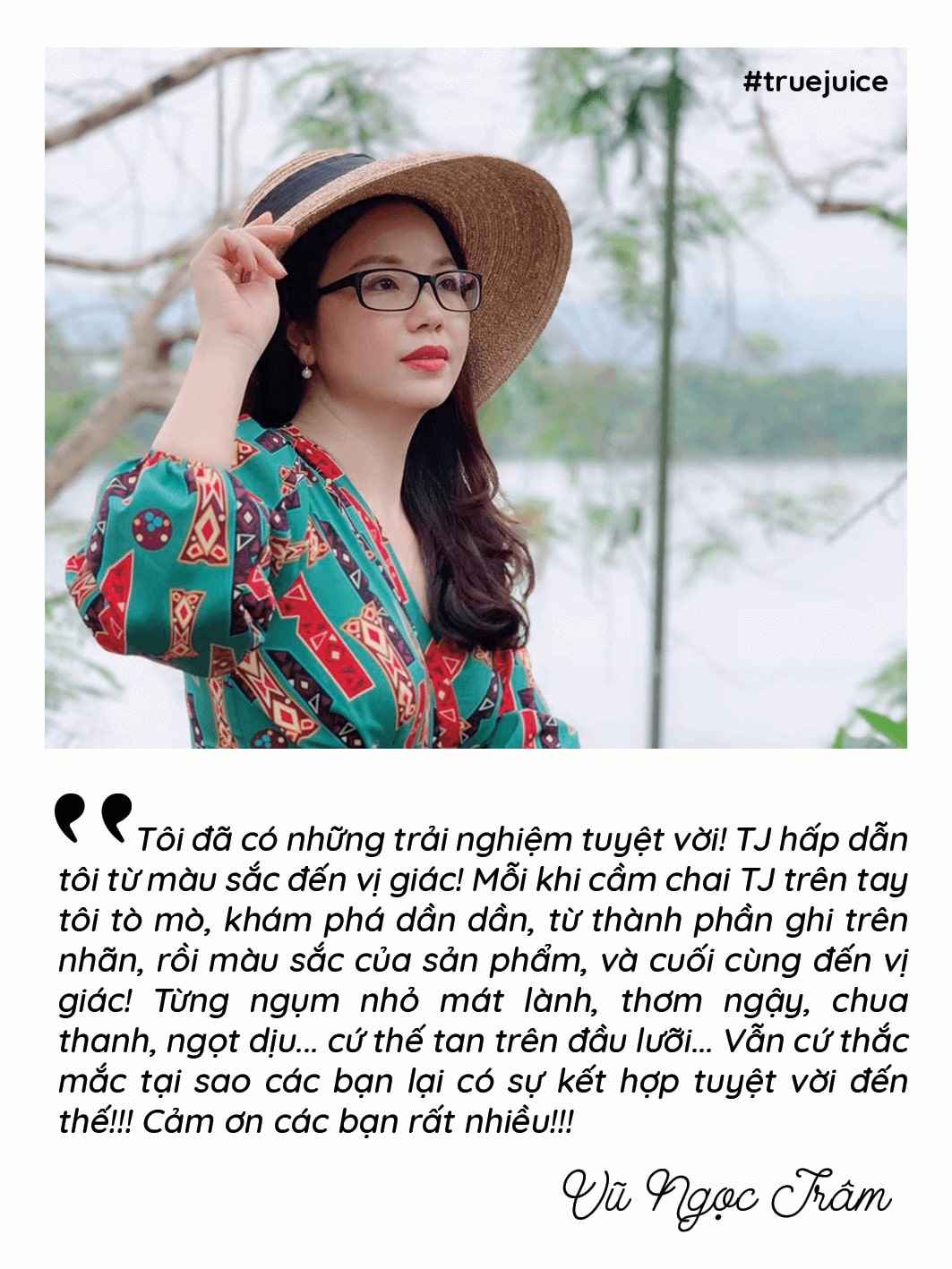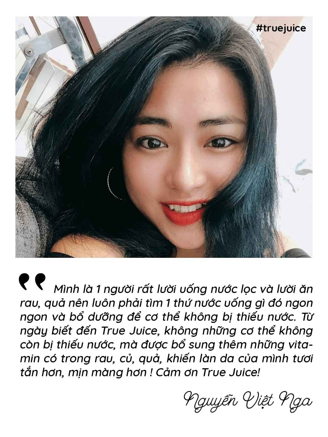 Đồ uống của True Juice luôn được làm tươi sống với các chỉ tiêu khắt khe về chất lượng, được ép với công nghệ ép lạnh hiện đại để giữ được tối đa dinh dưỡng của rau củ quả. Mỗi chai 295ml ép từ 0.6 ~ 1kg rau củ tươi sống nguyên chất 100% canh tác hữu cơ, có chứng nhận an toàn đảm bảo cho sức khỏe người tiêu dùng từ các nhà cung cấp uy tín, đáng tin cậy.